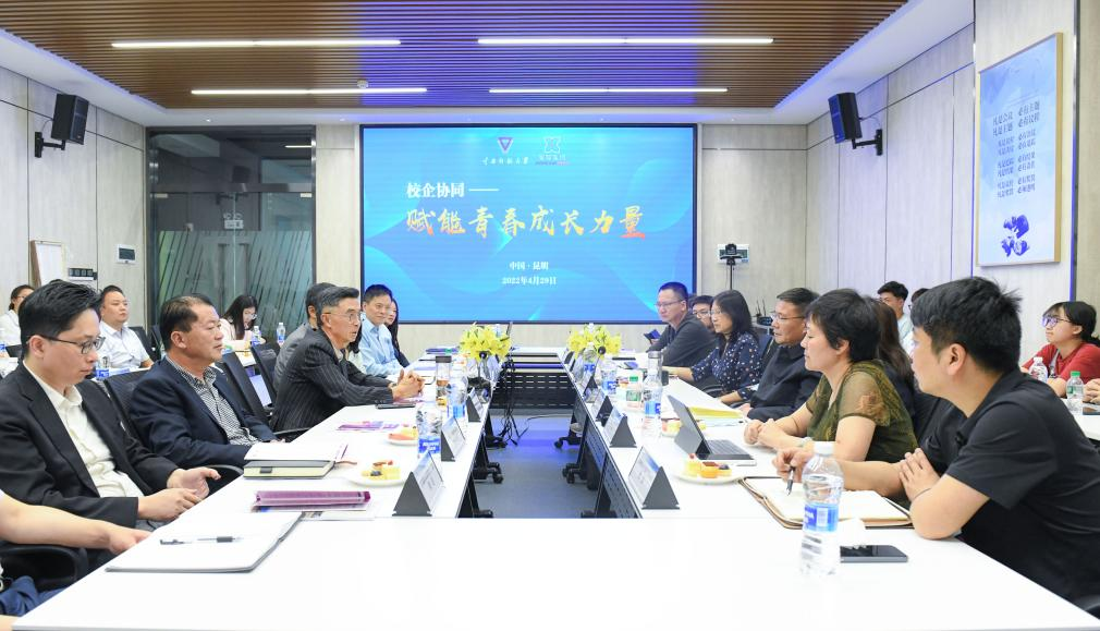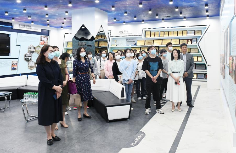 2021年星耀集团在永利官网设立“星耀励学金”,旨在助力学子成长成才,经过层层筛选,永利官网共30名2021级本科生获得该项资助。基于校企双方良好的前期合作关系,王德强校长一行于4月29日赴星耀集团回访调研,郝淑美副校长、对外合作交流处(校友工作办)、就业处、学生处等相关职能部门负责人参加调研。星耀集团董事长颜语、集团董事长助理刘国成、集团综合管理中心总经理邓悦等出席校企交流座谈会,校企双方携手为青年学子成长赋能。此外,永利官网获得 “星耀励学金”的2021级“星耀一班”全体同学一同前往,参观学习。