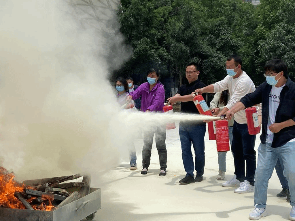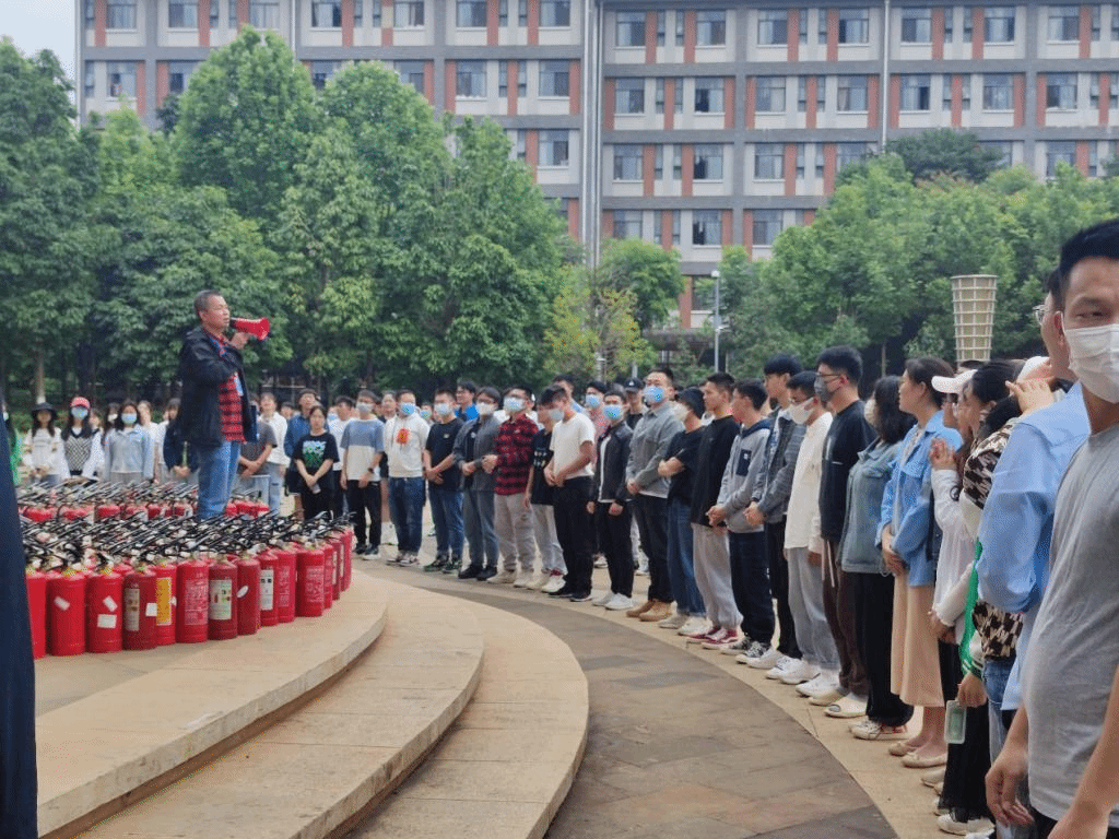 应急疏散演练后,防火科科长肖潇介绍了干粉灭火器的识别、正确的使用方法以及灭火时风向、灭火部位判定等各项注意事项,呈贡区消防救援大队现场示范了灭火器和高压水枪的使用方法及注意事项。参演师生员工按6-8人一组,有序开展使用干粉灭火器进行扑灭明火实战演练。
