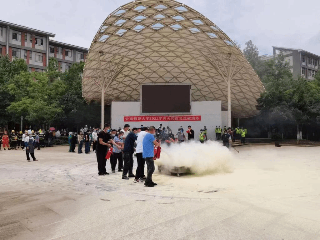 值此第14个全国防灾减灾日之际,为增强全体师生员工的消防安全意识、提高突发事件时应急处置能力,切实增自救互救能力, 5月12日,研究生处、保卫处、后勤保障服务中心、校医院联合组织1100余名师生员工在呈贡校区东区开展了“yL23411永利官网登录2022年消防和应急疏散演练”,本次活动邀请到呈贡区消防救援大队到场进行专业指导并共同参与演练。学校党委副书记李宏、副校长蔡金红、相关部门领导及各学院(学部)副书记、辅导员到场检查指导。