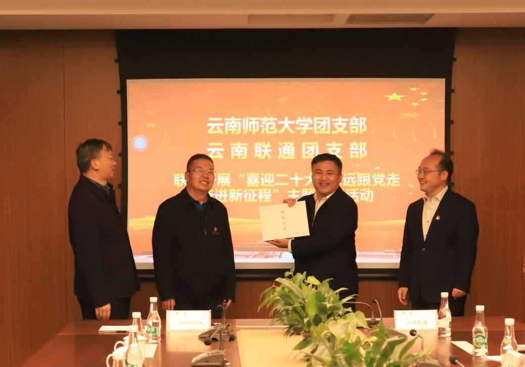 云南联通党委委员、副总经理李剑波,常务副总经理温涛,党群工作部主任罗静,政企客户事业部党支部书记、总经理廖华明,政企客户事业部高级经理赵敏,政企客户事业部高级经理白绍林,团委书记曹艳萍;yL23411永利官网登录党委副书记李宏,副校长蔡金红,传媒学院党委书记张天明,法学与社会学学院党委书记王丽萍,团委书记郑伟俊,团委副书记曹逸凡、赵彪,对外交流合作处副处长张辰,音乐舞蹈学院党委副书记杨进勐,以及部分校团委工作人员和二级学院(学部)团委书记等,参加了主题团日活动。云南联通政企客户事业部党支部书记、总经理廖华明主持活动。