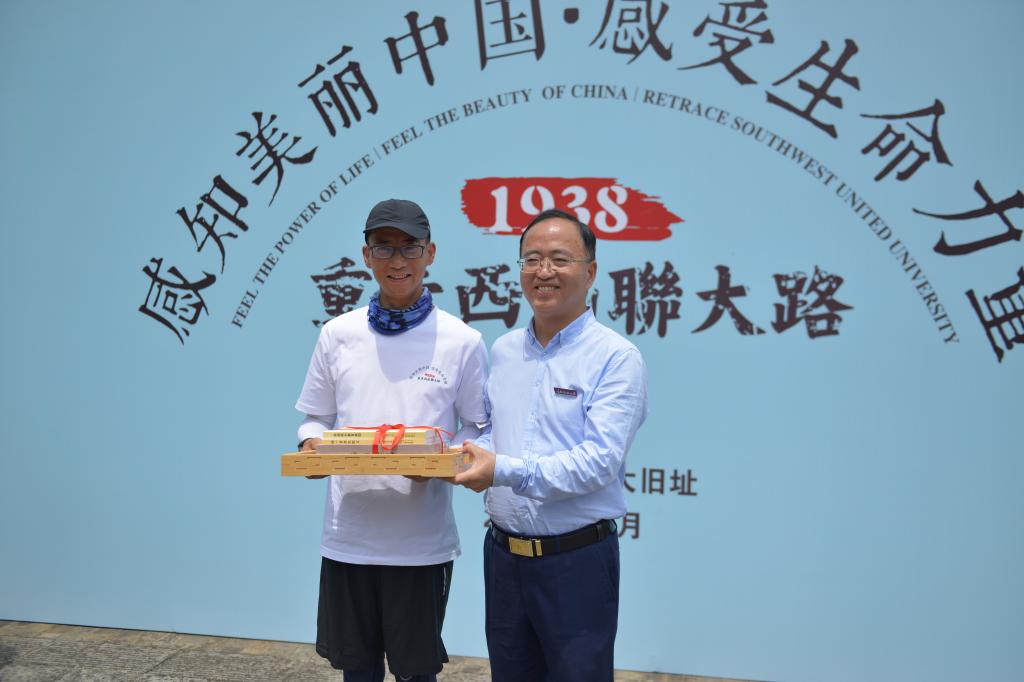 胡晓明总裁在致谢辞中指出,1938 年 2 月,当中国承受世纪之辱之时,西南联大300多师生从长沙出发,到达昆明,他们承递了中国文化人的精神,延续了中国的文化教育力量,培养了大批卓有成就的优秀人才。感谢曾昭伦、袁复礼、闻一多带领的西南联大师生旅行团在 84 年前创造的这段历史和精神。重走西南联大之路,体验这段历史,体悟西南联大“刚毅坚卓”精神,缅怀中国文化人的家国情怀,对于“感知美丽中国,感受生命力量”,增强历史责任感、使命感具有重要的现实意义。胡晓明总裁说,我们现在脚下这片土地,是曾经的西南联大旧址,也是未来时代新人的摇篮,是我们徒步重走西南联大路的终点,更是我们传递联大精神薪火、为国家创新、为人才培养做更多贡献的出发点,我们每一位企业家将为之持续努力。