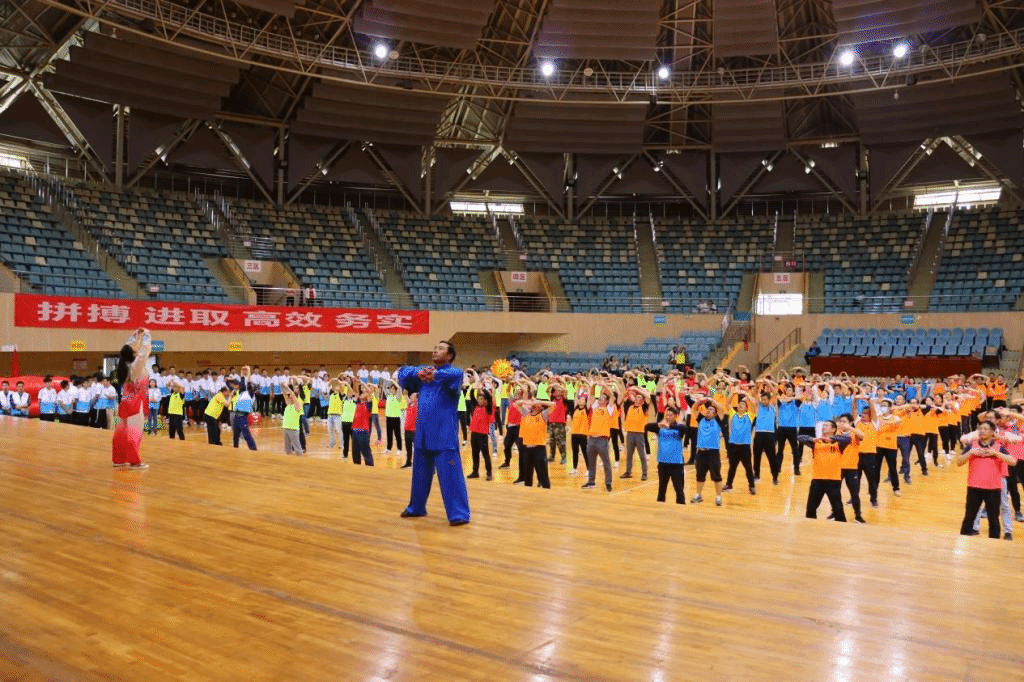 《运动员进行曲》响起时,8支队伍高扬红旗,以良好的精神风貌大踏步迈入运动场。随后,体育学院左文泉老师、科学技术处侯树华老师带领大家进行了热身活动。
