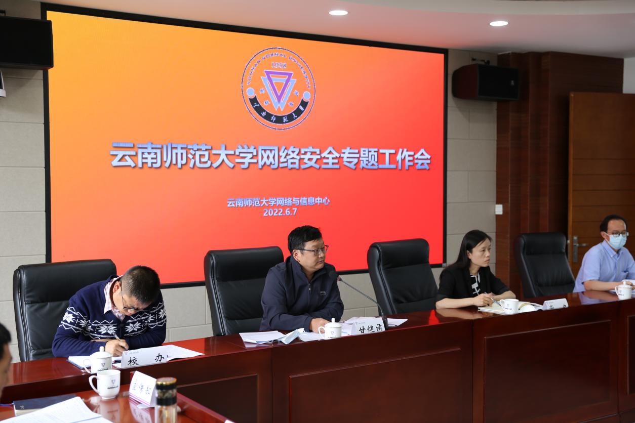 为贯彻落实党中央和习近平总书记关于网络安全工作的重要指示精神和决策部署,深入落实网络安全责任,全力做好党的二十大、联合国《生物多样性公约》第十五次缔约方大会(以下简称COP15)第二阶段会议等重大活动网络安全保障,根据云南省委省政府、教育厅和公安厅关于网络安全工作的部署,进一步加强永利官网网络安全管理工作,2022年6月7日,甘健侯副校长在呈贡校区主持召开了yL23411永利官网登录2022年网络安全专题工作会,各部门(学部、学院)领导和网络管理员参加了会议。