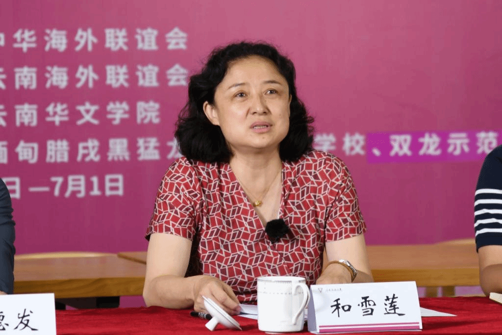 云南华文学院和雪莲书记致辞,她对中华海外联谊会、云南海外联谊会及缅甸腊戌果文文教会、黑猛龙中学和双龙中学的大力支持表示感谢。她表示,中华文化大乐园是增进海外华裔青少年和海外各界朋友了解中华文化的品牌活动,以传授中华文化和传统才艺课程为主要内容,通过丰富多彩的中华文化传统才艺学习,让更多的海外青少年能够了解和体验中华文化,增进对中国的认识,促进中外文化交流、民心相通。为此,云南华文学院精心安排课程,精心挑选师资,细心做好服务,让各位学员学有所获、乐在其中。她希望学员们珍惜这次学习交流机会,认真参加大乐园的各项学习活动,体验中华文化的无穷魅力,成为传承传播中华文化的友好使者,为促进中缅友好做出积极贡献。
