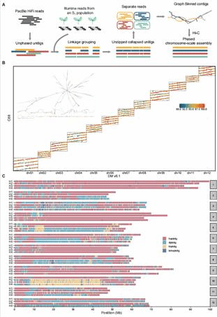 该研究以同源四倍体马铃薯“合作88”为研究对象,发布了当前最高质量的栽培马铃薯基因组,同时通过比较基因组学和遗传学分析,揭示了同源染色体间广泛存在且不均衡的序列、表达和遗传行为的差异,并展示了亲本之间有害突变基因型的互相屏蔽和功能基因的互补,为四倍体马铃薯育种奠定了遗传学和基因组学基础。