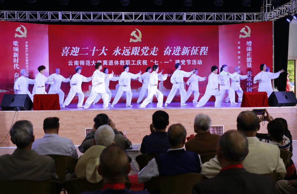 2022年6月29日下午,离退休教职工党委、离退休工作处在一二一西南联大校区离退休教职工西院活动中心举行离退休教职工“喜迎二十大 永远跟党走 奋进新征程”庆祝“七·一”建党节活动。校党委副书记张玮,学校离退休老领导,学校离退休工作领导小组成员单位及联大校区相关单位负责人,获得中共中央“光荣在党50年”纪念章的老党员,文艺作品获奖者等参加了活动。