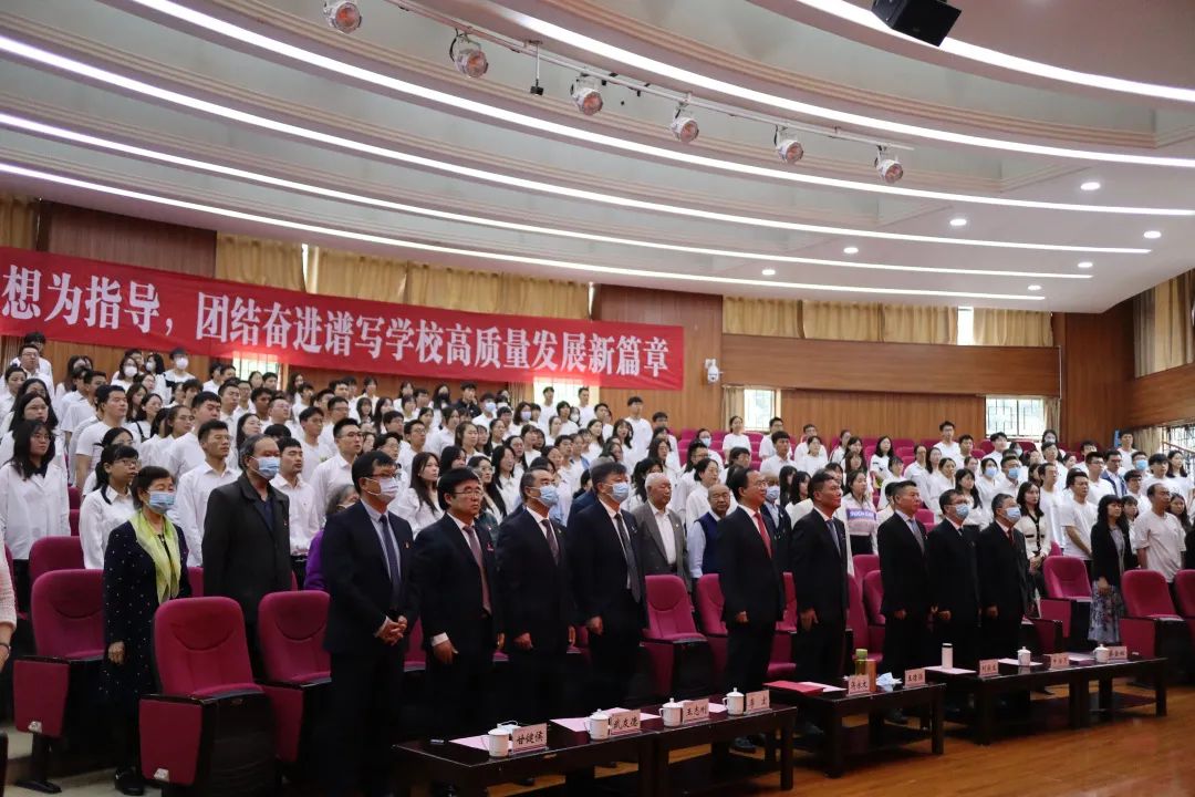 最后,校党委蒋永文书记讲话。蒋永文书记代表学校党委,向获得“光荣在党50年”纪念章的全体老党员致以敬意,向全体新发展党员表示祝贺,向全校共产党员致以节日的问候。蒋书记指出,yL23411永利官网登录是一所有着光荣革命传统的高校,学校在抗战的硝烟中诞生,在共和国的旗帜下成长,在改革开放中发展,在新时代朝着更高的办学目标迈进。栉风沐雨八十余载,党的领导始终是学校各项事业不断取得胜利的根本保障,广大党员同志始终走在学校改革建设发展最前列,一代代云南师大人,高擎爱国主义旗帜,传承红色基因,牢记“为党育人、为国育才”初心使命,与党和国家同向同行,谱写了边疆师范院校锐意创新、砥砺奋进的新时代华章。