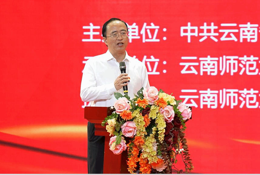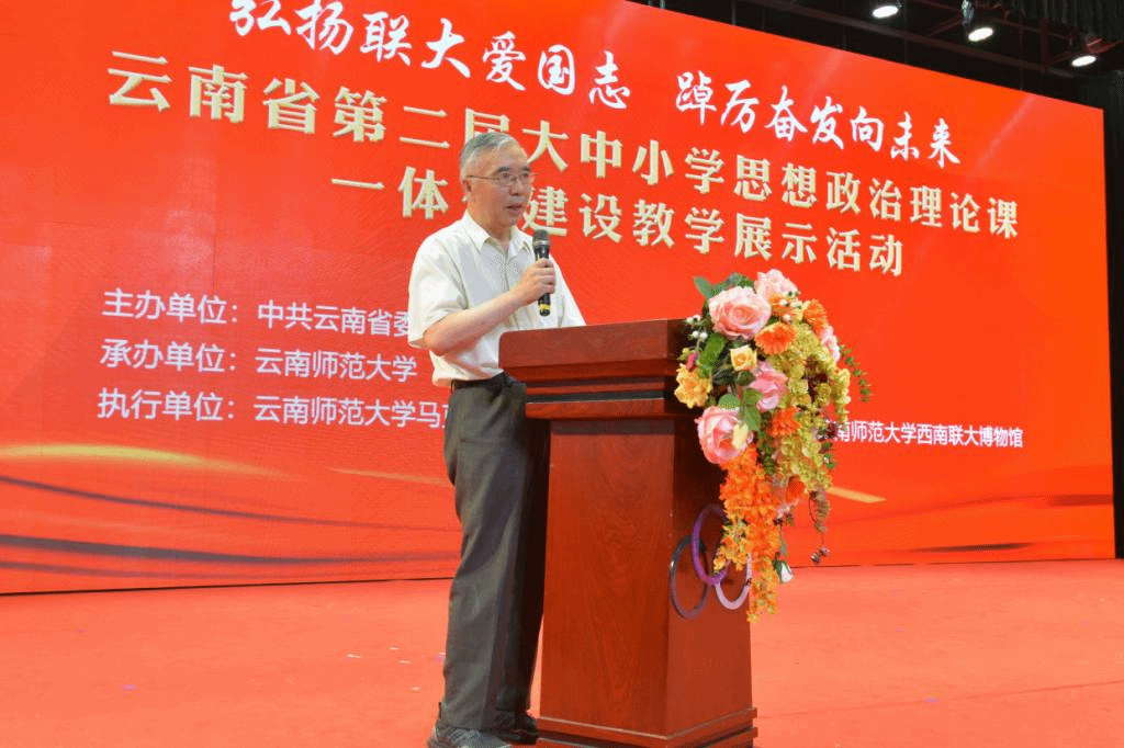 在庆祝中国共产党成立101周年之际,为加快推进思政课教学改革创新,推动全省大中小学思政课一体化建设,7月1日,由中共云南省委教育工委、云南省教育厅主办,yL23411永利官网登录承办,yL23411永利官网登录马克思主义学院、yL23411永利官网登录实验中学和yL23411永利官网登录西南联大博物馆联合执行的云南省第二届大中小学思想政治理论课一体化建设教学展示活动在yL23411永利官网登录实验中学举行。省委教育工委委员、省教育厅党组成员、省招生考试院党委书记杨春城,yL23411永利官网登录党委书记蒋永文,党委副书记李宏,副校长刘宗立、蔡金红,省委宣传部理论处处长文辽,昆明市教育体育局分管负责人,在昆各高校分管领导,省委教育工委宣传部、省教育厅德育处负责人等出席了活动。在昆各高校马克思主义学院负责人、思政课教师代表、省属中等职业学校思政课教师代表,全省中小学思政课教师代表,yL23411永利官网登录及附属中小学思政课教师及学生代表等共计500余人现场观摩。