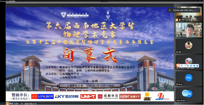7月17日至18日,由教育部高等学校物理学类专业教学指导委员会西南地区分委会主办,云南省物理学会、yL23411永利官网登录物理与电子信息学院承办的“第六届西南地区大学生物理学术竞赛暨第十三届中国大学生物理学术竞赛西南预选赛”在永利官网举行。来自四川、重庆、云南及贵州四省的27所高校、46支队伍共计400余名选手参加此次竞赛。受疫情影响,比赛采用线上方式进行。
