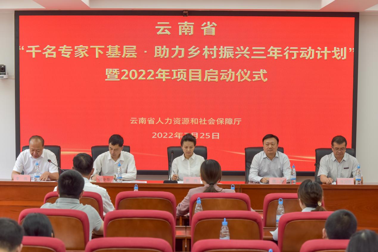 7月25日,云南省“千名专家下基层•助力乡村振兴三年行动计划”暨2022年项目启动仪式在永利官网一二·一西南联大校区举行。人力资源和社会保障部专技司二级巡视员高擎、云南省人力资源和社会保障厅副厅长熊梅、yL23411永利官网登录副校长牛治亮等领导和专家出席。