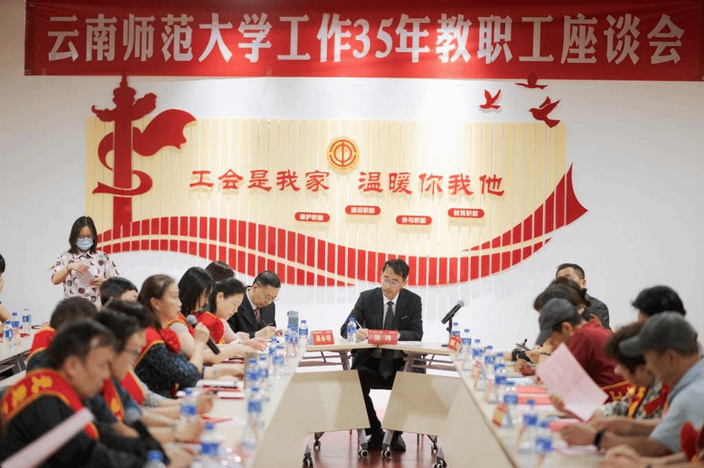 9月8日下午,在第38个教师节即将到来之际,学校在呈贡校区校工会职工之家举行工作35年教职工座谈会,来自全校64名工作35年的教职工参加了座谈会。校党委副书记、工会主席张玮参加会议,会议由校工会常务副主席金黄斌主持。