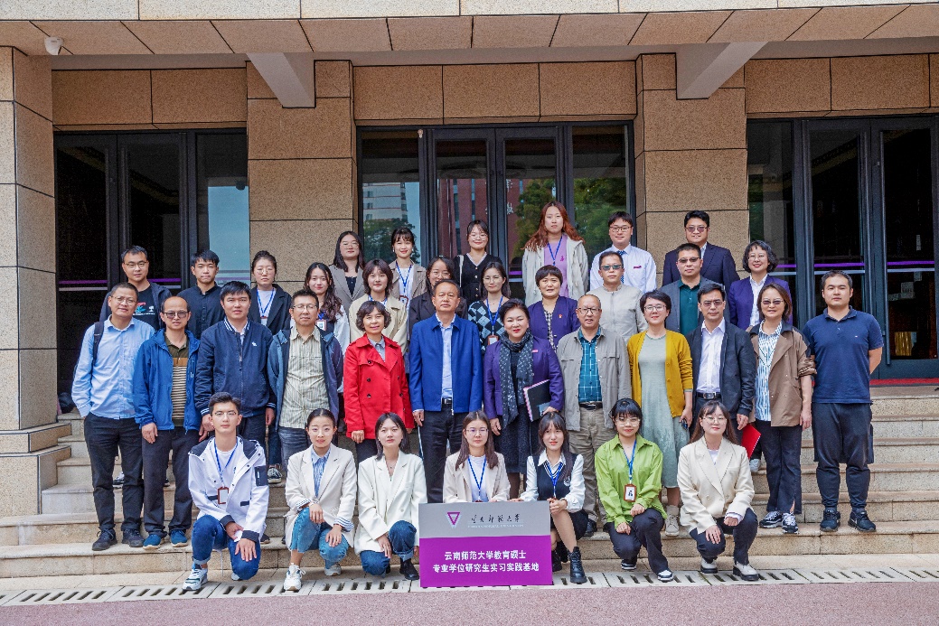 安学斌副校长及李幼芹校长共同为导师代表颁发了聘书,同时为“yL23411永利官网登录教育硕士专业学位研究生实习实践基地”揭牌,全体参会教师与教育硕士实习生合影留念。