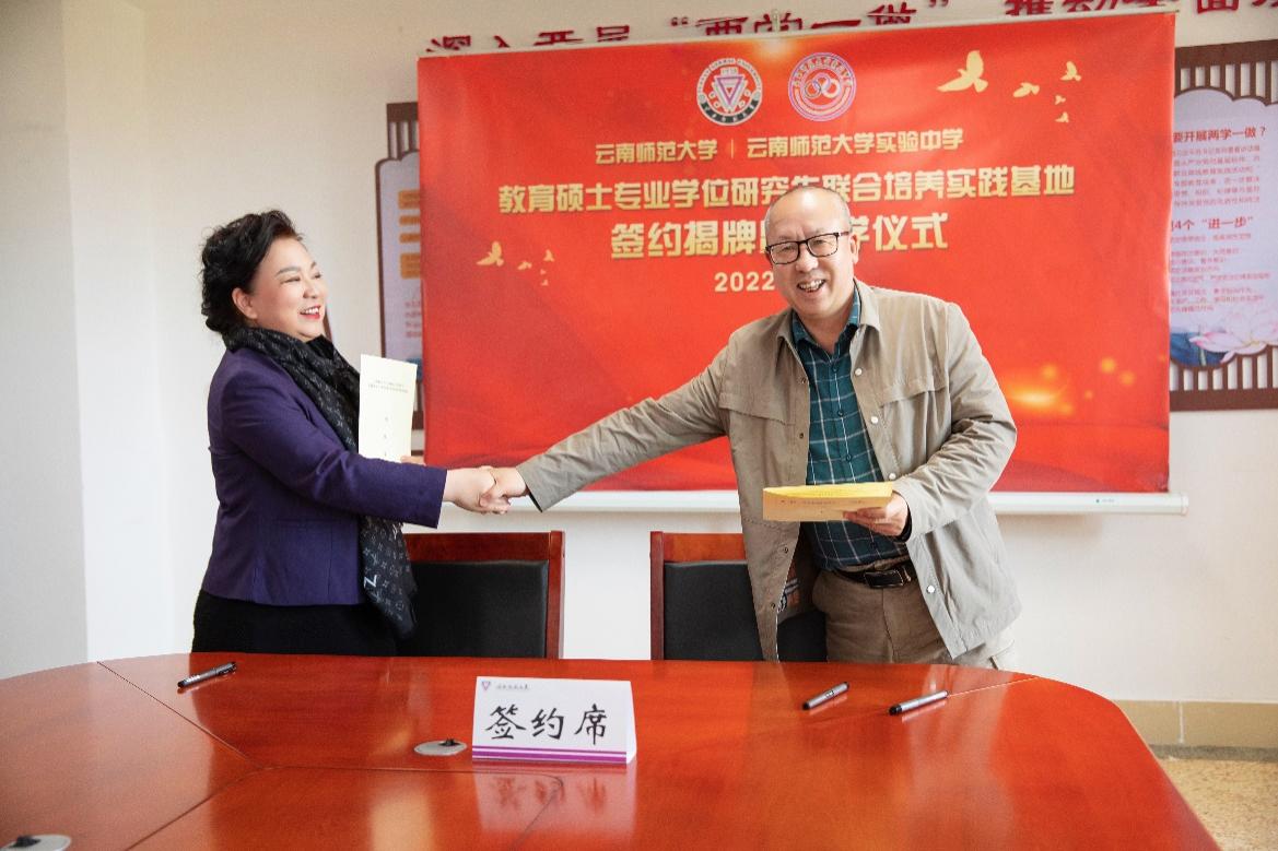 研究生院骆华松院长和实验中学李幼芹校长共同签署了《yL23411永利官网登录与yL23411永利官网登录实验中学共建教育硕士专业学位研究生联合培养实践基地协议》。