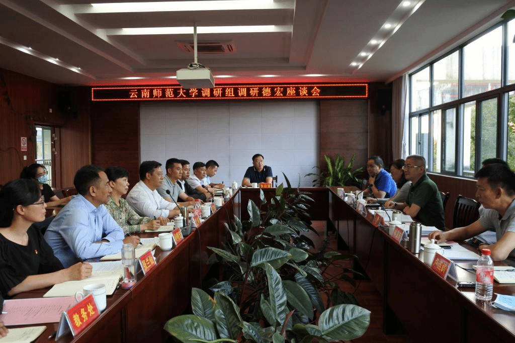 调研座谈会在德宏师范高等专科学校召开。德宏州副州长雪琳、州教育工作委员会副书记蔺应闯,德宏师范高等专科学校党委书记王根顺、校长杨明宏及班子成员、相关职能部门负责人参加座谈会。会议由王根顺主持。