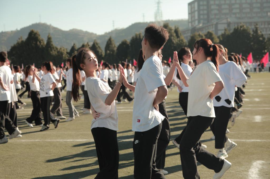 伴着雄壮的国歌,鲜红的五星红旗迎着朝阳徐徐升起。张祖武宣布第五十二届田径运动会暨第五届体育节开幕,现场响起热烈的欢呼声。