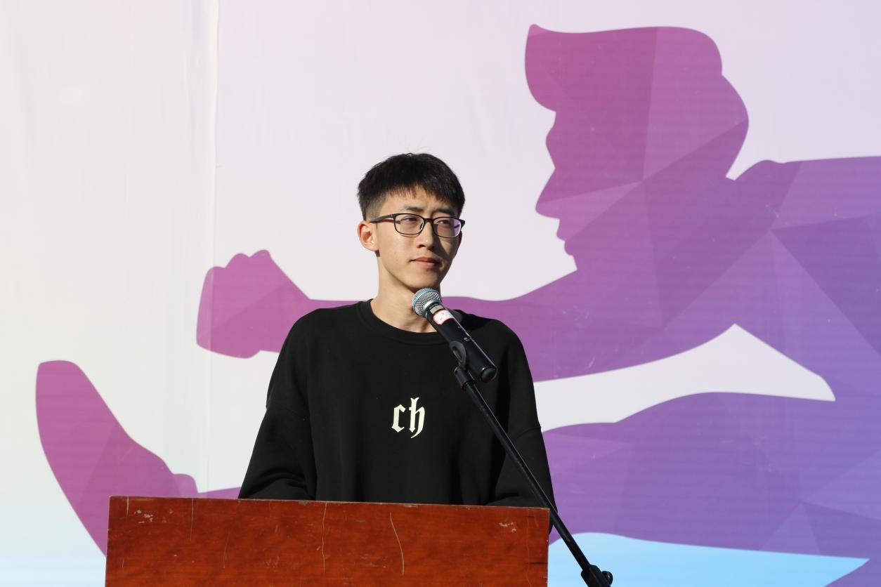 体育学院教师杨杰、物理与电子信息学院学生段云鸿分别代表裁判员、运动员宣誓。