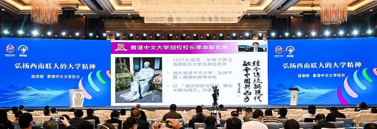 王德强作了题为《传承西南联大精神 建设西部领先 辐射南亚东南亚的高水平师范大学》的主旨演讲。他说,在国家民族危亡之际,为保存中华民族文化教育命脉,北大、清华、南开三校迁往云南合组西南联大。在艰苦简陋的条件下,三校结茅立舍、精诚团结、勠力同心,广大师生教书救国、读书报国,铸就了世界高等教育史上的不朽丰碑。作为西南联大留在昆明的唯一血脉,yL23411永利官网登录在改革建设发展的不同时期牢记历史嘱托,弘扬光荣传统,矢志云南教育发展,被誉为“红土高原上人民教师的摇篮”。王德强表示,作为云岭大地基础教育的“领头羊”,学校要把2020年1月20日习近平总书记考察调研学校西南联大旧址时的重要指示作为根本遵循,增强为党育人、为国育才的使命担当。要积极服务国家战略,主动融入“云南建设成为中国面向南亚东南亚的辐射中心”的发展目标,积极构建南亚东南亚国际中文教育体系,努力打造“留学云师”品牌。要弘扬西南联大兼容并包、合作无间的精神,把西南联合研究生院建设成传承西南联大精神的载体、集聚高层次人才的基地、培养创新型人才的摇篮、产出高质量成果的平台和高等教育改革创新的试验田。要与与会各方进一步深化交流合作,高效汇聚优质资源,进一步传承弘扬西南联大凝结成的爱国进步、刚毅坚卓、兼容并蓄的民族精神,为建设中国特色世界一流大学注入新的活力。