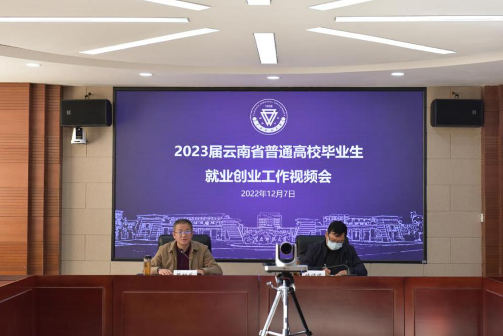 为深入学习贯彻党的二十大精神,落实党中央、国务院“稳就业”“保就业”决策部署,落实2023届全国普通高校毕业生就业创业工作会议精神,认真总结2022届高校毕业生就业工作,部署2023届云南省普通高校毕业生就业创业工作,12月7日下午,省教育厅、省人力资源社会保障厅召开2023届云南省普通高校毕业生就业创业工作视频会。根据省委教育工委、省教育厅要求,永利官网在呈贡主校区行政楼340会议室设会场,校党委书记张祖武、副校长甘健侯,各学院(学部)副书记、毕业班班主任和就业辅导员,就业处相关工作人员参加了会议。