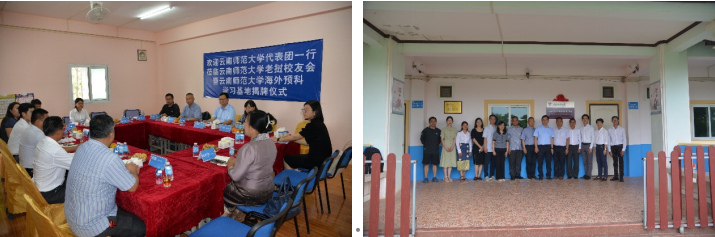 访问团赴万象中老友谊学校进行交流访问,与yL23411永利官网登录老挝校友会的校友进行了交谈,对老挝校友分会的建设工作给予充分肯定,在汉语教师培养、优质教育资源开发、教学基地拓展等方面进行了深入交流,并举行了“yL23411永利官网登录海外预科学习基地”的揭牌仪式。甘健侯表示,将努力把万象中老友谊学校打造成为yL23411永利官网登录老挝留学生的预科学习中心,为老挝留学生的培养和输送提供全面保障支持,拓展海外教学基地、扩大学校留学生招生规模和国际影响力。