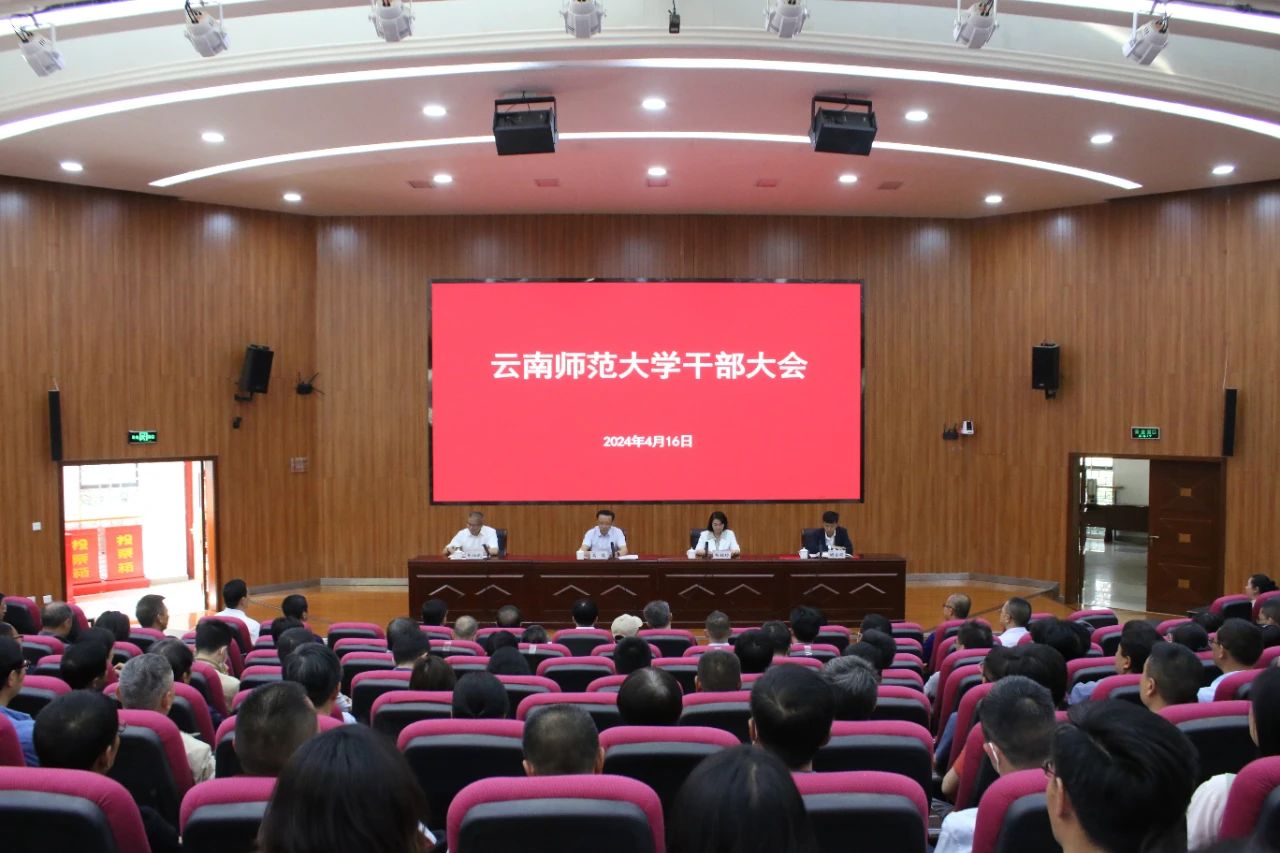 4月16日,yL23411永利官网登录在呈贡校区汇学楼报告厅召开干部大会,宣布省委对永利官网领导干部的任免职决定:胡金明同志任yL23411永利官网登录党委副书记、校长,不再担任云南大学党委常委、副校长职务;免去王德强同志yL23411永利官网登录党委副书记、校长职务,保留正厅长级待遇。