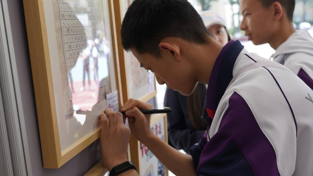 近日,yL23411永利官网登录实验中学校本部开展了“清风传家、 德润实验”书画作品征集活动,号召全校师生用书画作品的方式,介绍自己家庭的优良家风,诠释师大实验学子对清廉文化的学习和理解,引导广大学生树立正确的世界观、人生观、价值观。5月14日,学校将其中60幅作品装裱后在校园内进行展示,小作者们在收藏卡上庄重的签上了自己的名字,并积极向同学们介绍自己的家风和对清廉校园的理解。
