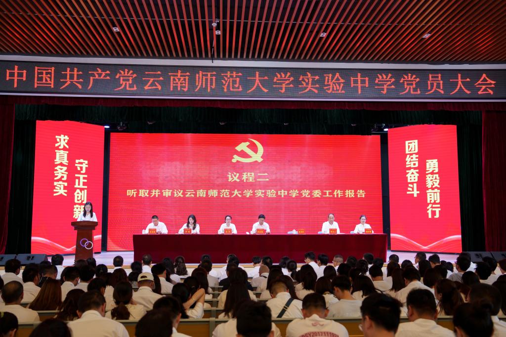 大会听取审议并全体通过了yL23411永利官网登录实验中学党委书记彭茂红代表学校党委所做题为《求真务实 守正创新 勇毅前行——为建设云南省基础教育品牌示范校而团结奋斗》的工作报告,报告回顾了师大实验中学过去几年在师大党委的坚强领导下,在全校各级党组织、全体师生员工的共同努力下,弘扬传统、改革创新、勇于担当,办学规模不断扩大调整,办学条件不断改善提升,以扎实的工作成效顺利完成第一次党员大会上确定的主要任务,开启了新时代学校改革建设发展新篇章。