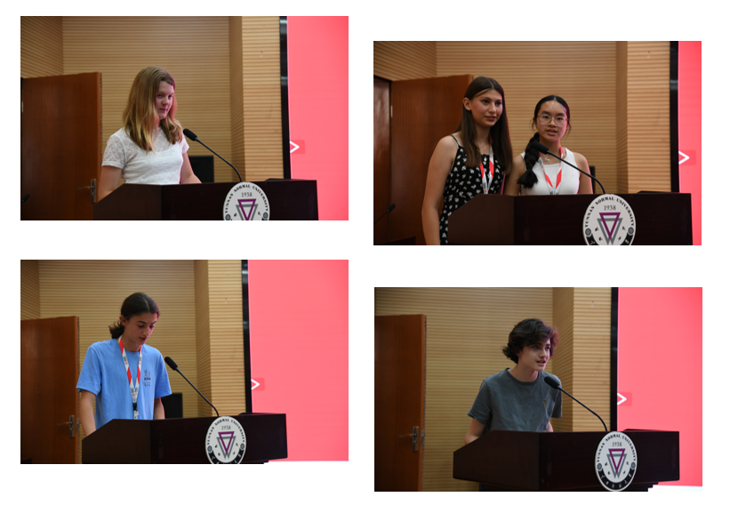 学生代表踊跃发言。来自The Piggott School的Niamh说这是一趟精彩绝伦的旅行,期待有一天能再来中国。来自Central Foundation Boys' School的Nathan说非常荣幸参加本次夏令营,特别喜欢中国文化和历史。来自Gumley House Convent School的Isabella和Emmalyn说感谢yL23411永利官网登录的老师带来精彩纷呈的课程。来自Bay House School的Arnold说很喜欢夏令营,特别是参观石林、斗南花市和品尝过桥米线。