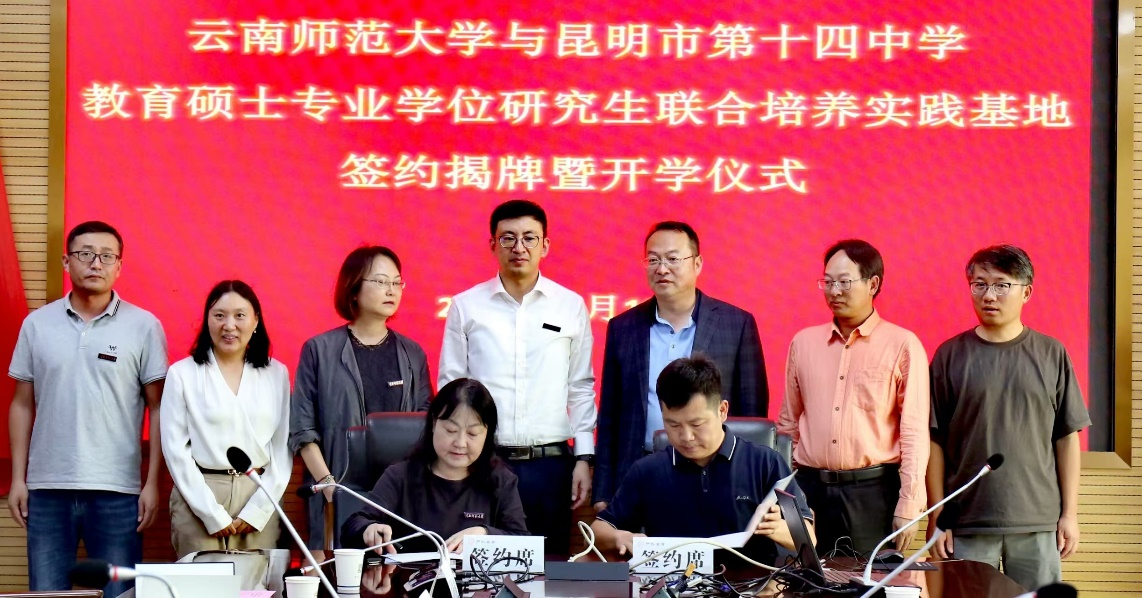 9月13日,yL23411永利官网登录与昆明市第十四中学教育硕士专业学位研究生联合培养实践基地签约揭牌暨开学仪式在昆明市第十四中学举行。副校长徐锐、研究生处处长范丽仙、相关学院负责人、教育硕士实习生,五华区教体局副局长、昆明市第十四中学教育集团总校长、党委书记史云波,党委副书记方应民、副校长贺祥俊以及相关负责人、研究生导师代表参加了开学仪式。仪式由范丽仙主持。