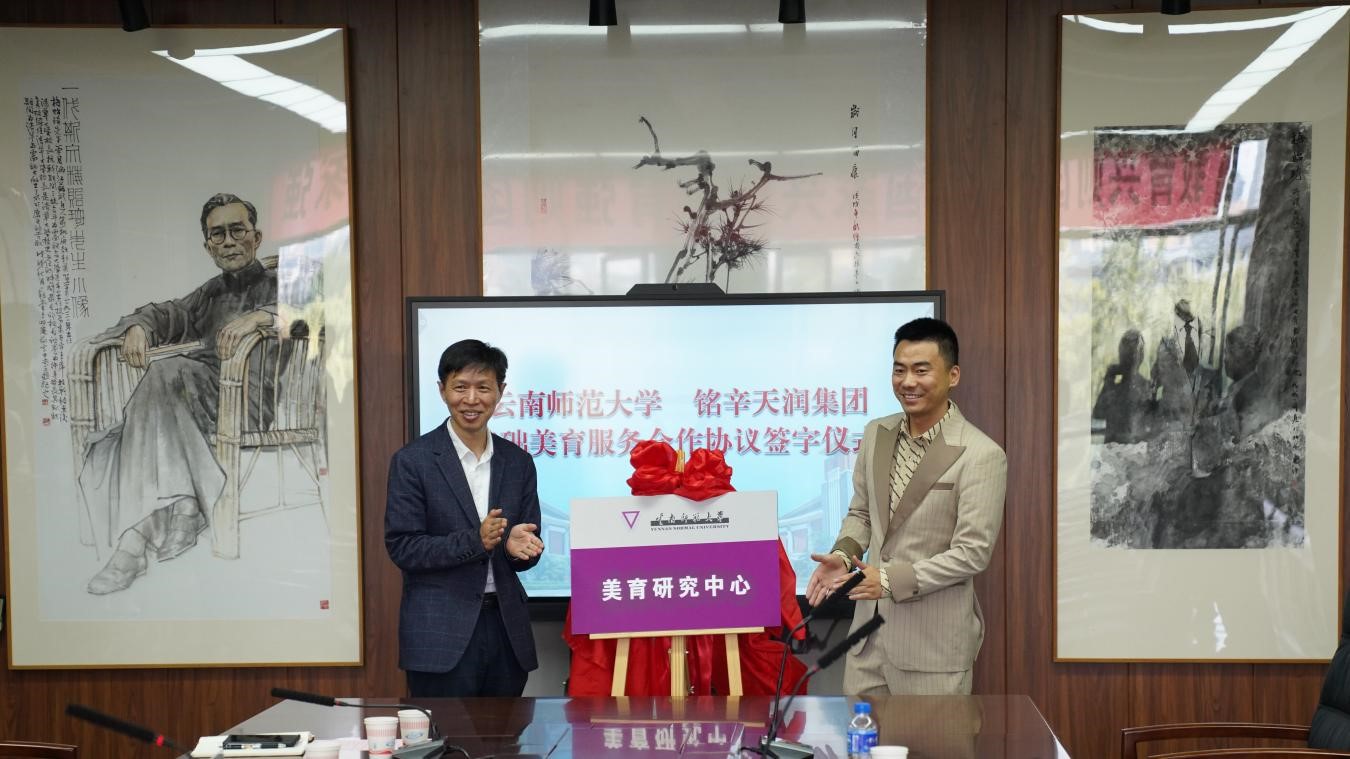 学校将依托艺术学院的平台,与铭辛天润集团共建美育研究中心,共同服务云南省基础美育教育事业建设,同时为学校各类帮扶合作项目的基础教育学校提供美育师资培训、拔尖人才培养和美育教室建设等方面的服务。