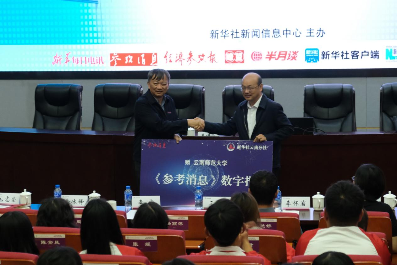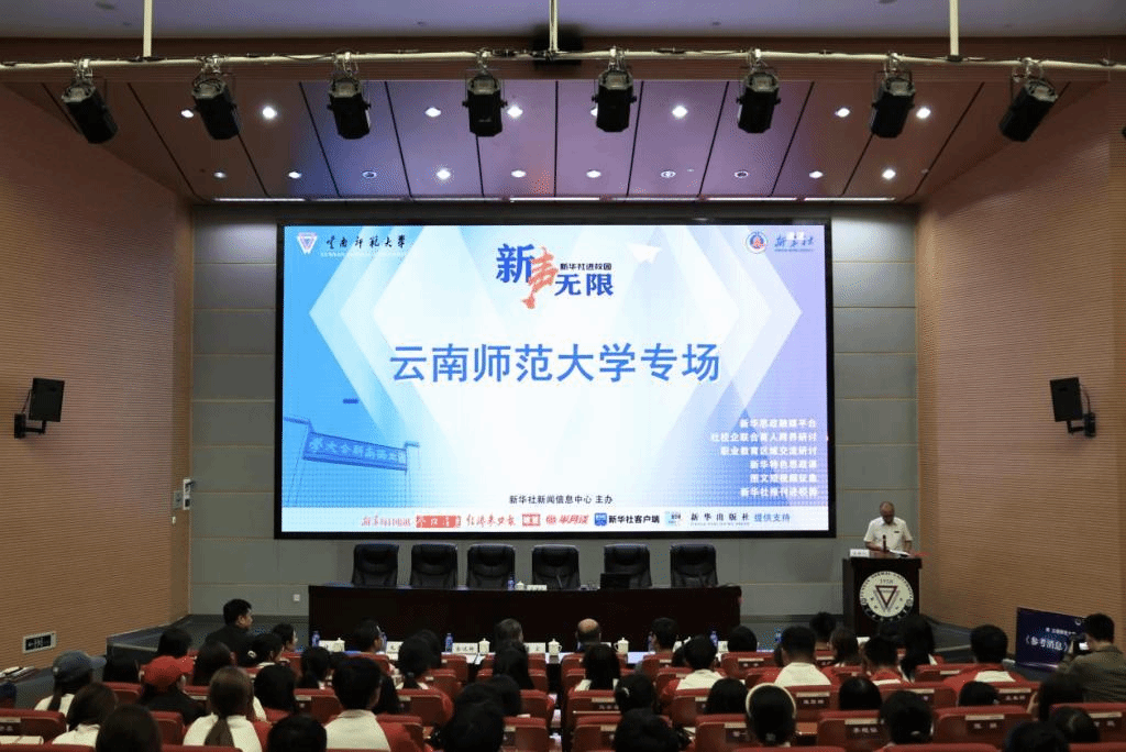 王江表示,新华社作为我们党最早创办和领导的新闻舆论机构,发挥着党的新闻舆论主力军、主渠道、主阵地作用;同时,新华社还肩负着向世界讲好中国故事的使命任务。yL23411永利官网登录传承与西南联合大学师范学院,办学历史源远流长,成为培育教育英才的摇篮。2014年新华社与yL23411永利官网登录签署战略合作协议,十年来,双方在云南舆情研究基地建设、教学与学生实习基地建设、新闻信息发布、人才联合培养等领域进行了合作探索,取得了良好的成效。希望通过“新华社进校园”系列活动的开展,能够助力云师青年进一步坚定理想信念,厚植家国情怀,加强品德修养,增长知识见识,把爱国情、强国志、报国行融入中国式现代化建设的伟大进程中,书写无愧于时代的青春之歌和精彩人生。
