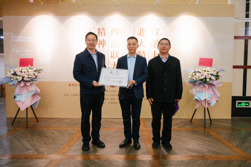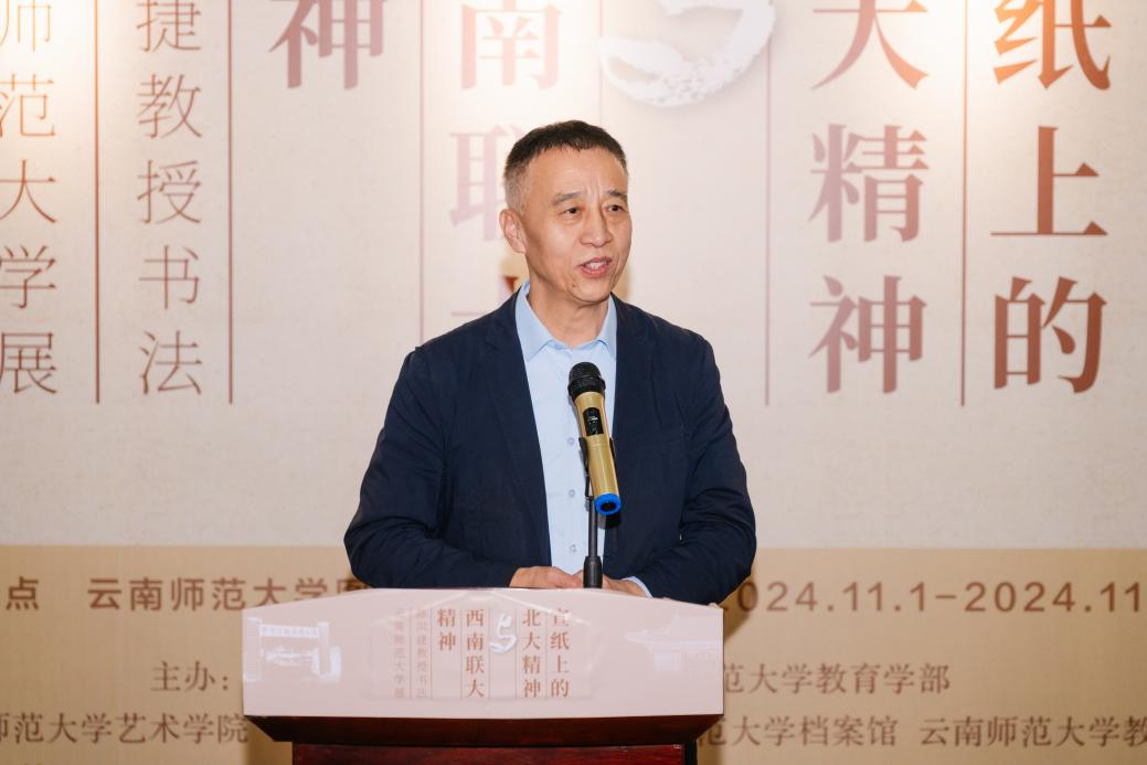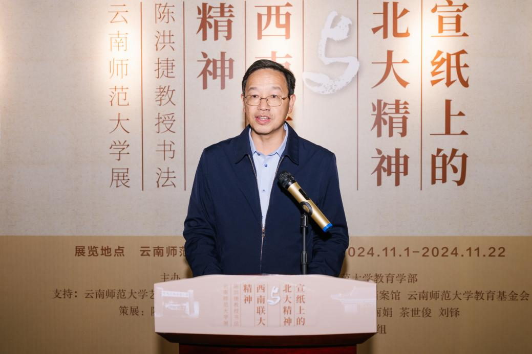 在西南联合大学在昆建校暨yL23411永利官网登录建校86周年之际,11月1日由北京大学蔡元培研究会和yL23411永利官网登录教育学部主办的“宣纸上的北大精神与西南联大精神”陈洪捷教授书法yL23411永利官网登录展在呈贡校区图书馆开幕。北京大学博雅教授、《北京大学教育评论》主编陈洪捷,yL23411永利官网登录副校长陈正权出席开幕式,学校相关单位负责人及师生代表参加开幕式。开幕式由教育学部党委书记禹紫灵主持。