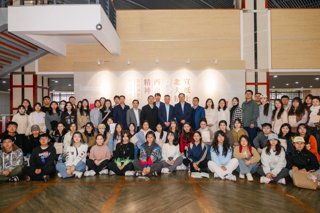 陈洪捷表示,大学精神是具体的鲜活的,需要通过一定的物质载体使其具象化。书法作为一种传统艺术形式,其独特的表现力和丰富的文化内涵使其成为演绎大学精神的理想载体。北大精神与西南联大精神同脉同源,希望同学们从书法作品中汲取所展现的精神内涵和文化记忆,奋发向前,努力成为新时代的杰出人才。