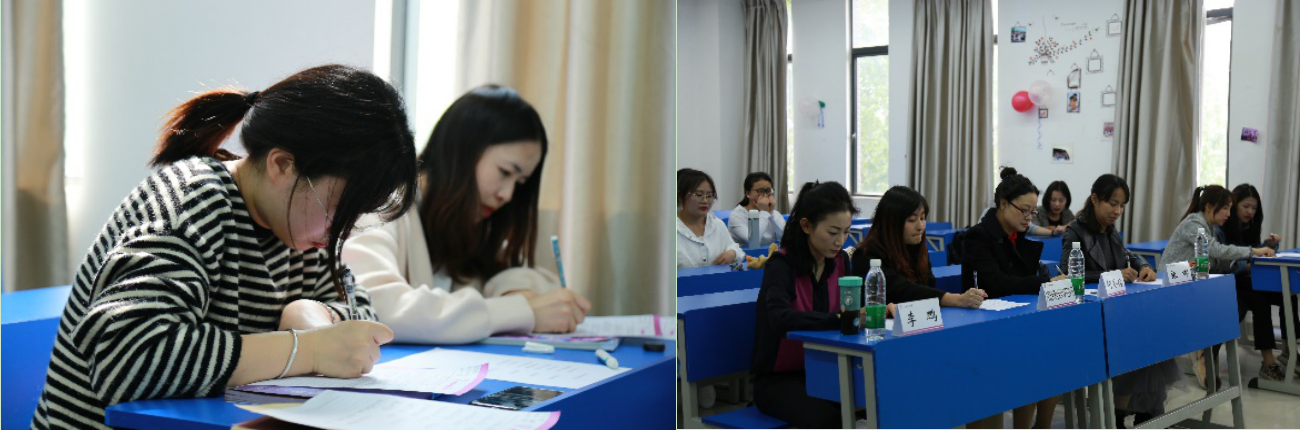 书法比赛同时在304、215教室举行。本次书法比赛共有140名同学报名。同学们仔细描摹认真书写,评委老师们认真对待每一位选手的书写成果,在反复讨论后评选出了杨玉娇、潘蕊等同学的一等奖书法作品。