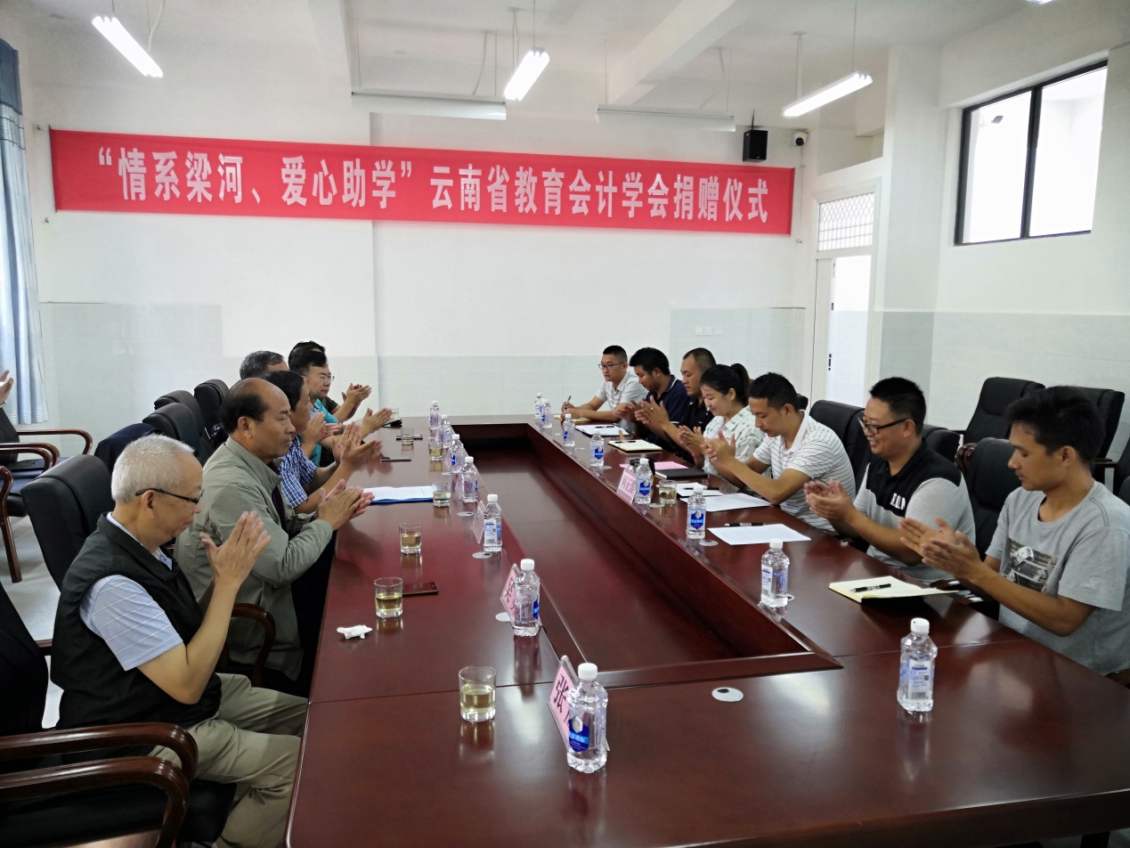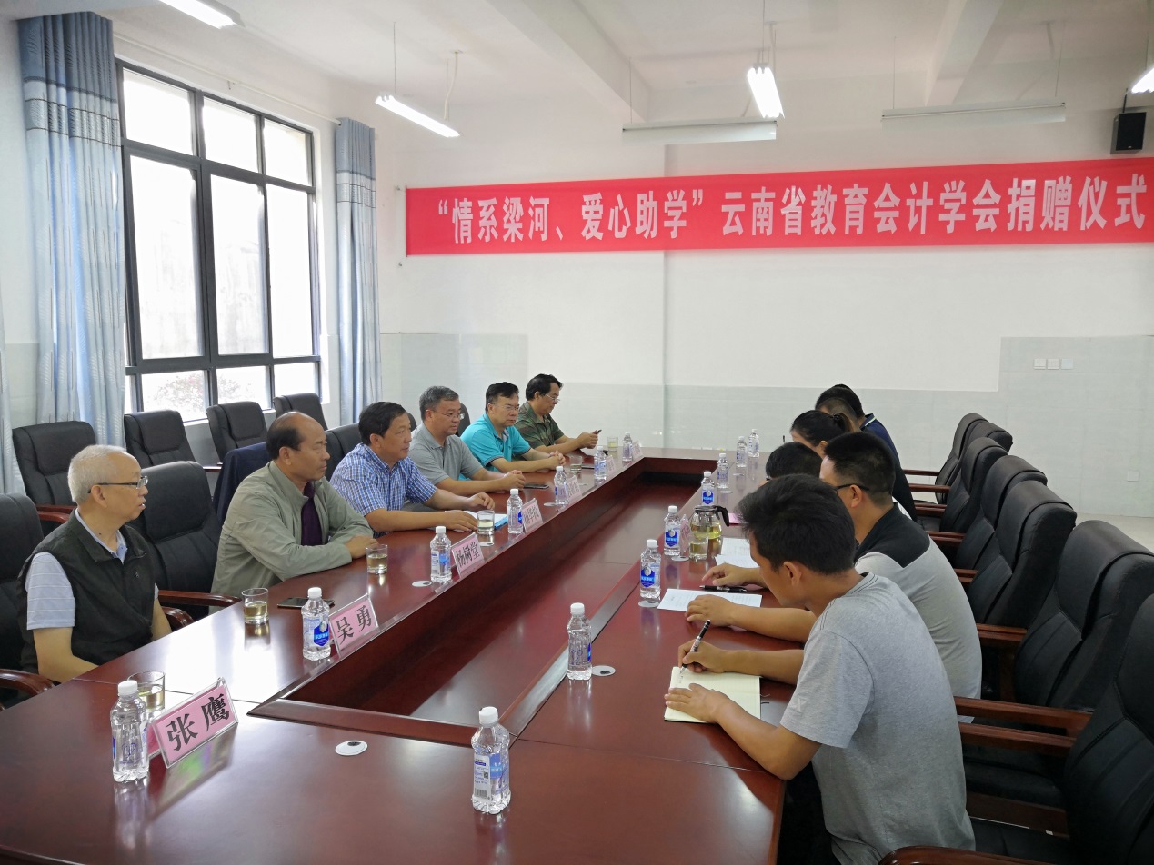 云南省教育会计学会会长、云南农业大学经管院书记杨华松同志代表云南省教育会计学会向梁河县遮岛镇九年一贯制学校捐赠现金20000元,杨会长希望遮岛镇九年一贯制学校在梁河县教育局的领导下,学校师生的共同努力下,克服新办学校的各种困难,艰苦奋斗,把学校办的越来越好,为彻底阻断贫困代际传递做贡献。