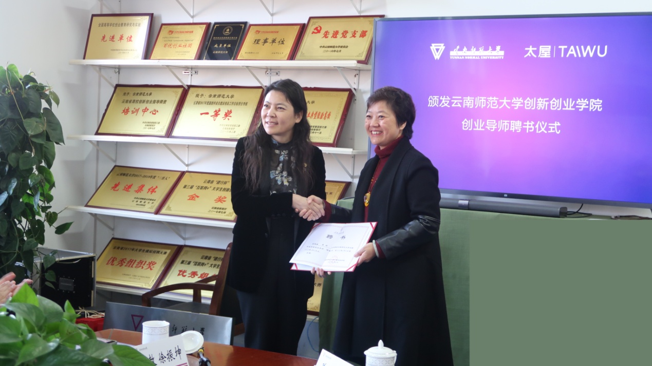 签约仪式上,就业处李红处长代表就业处与太屋集团杨彬总经理共同签署校企战略合作协议,同时代表创新创业学院聘请杨彬总经理担任创业导师并颁发聘书;教务处徐锐副处长代表学校授予太屋集团共建“教学研究实习与就业基地”牌匾,希望双方在合作共赢、互惠互利的共识下,优势互补,携手并进,努力把教学研究实习与就业基地建设成校企合作的典范。