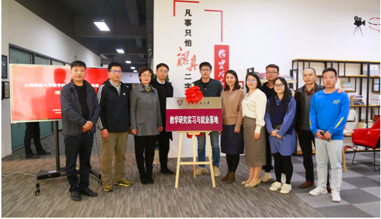 2020年11月25日下午,yL23411永利官网登录与云南众力影业有限公司共建教学研究实习与就业基地签约授牌仪式在金鼎科技园“云岭先锋”夜校栏目拍摄基地、云南众力影业有限公司举行。永利官网马克思主义学院党委书记张健、传媒学院院长魏红、创新创业学院办公室副主任李映松、校友工作办公室副主任张辰、马克思主义学院党委副书记和吴云、传媒学院党委副书记王平平,以及云南众力影业有限公司总经理、永利官网传媒学院2007级校友许东平参加签约授牌仪式。