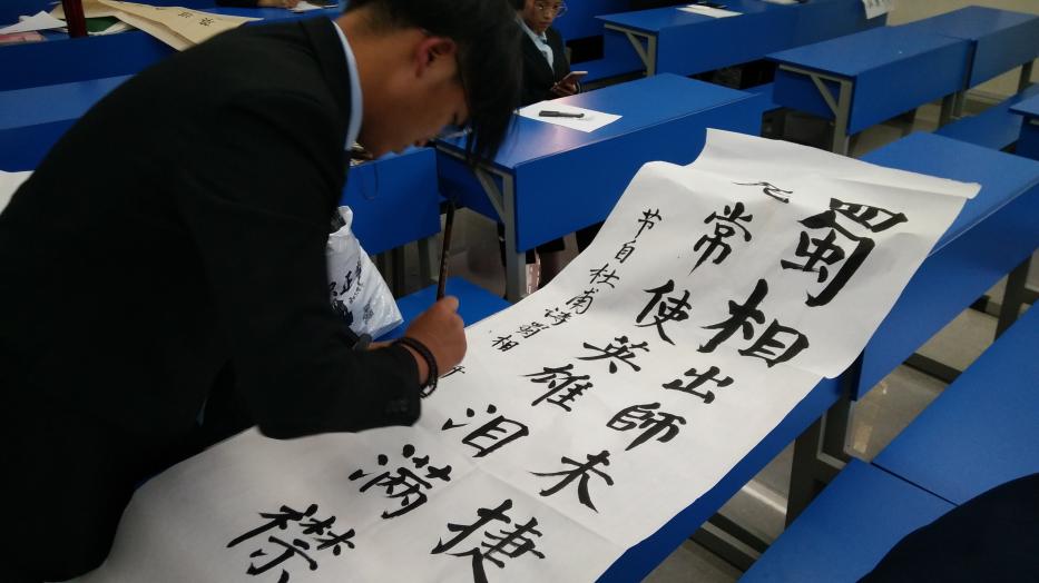 为规范学生书写,培养和检验秘书学专业学生的书写技能,此次“初心杯”秘书文化节还于11月19日下午举办了书法比赛。本次比赛参赛形式灵活,内容多样,分硬笔、毛笔和粉笔三组同时进行。最后秘书学专业20级张开文同学以“矫若惊龙,飘若浮云,铁笔银勾”的书法荣获毛笔、粉笔第一名和钢笔第二名。本次书法大赛不仅让同学们认识到了书法对秘书学专业同学的重要性,而且营造了积极向上、清新高雅、健康文明的校园文化氛围,提升了大学生的文化修养。
