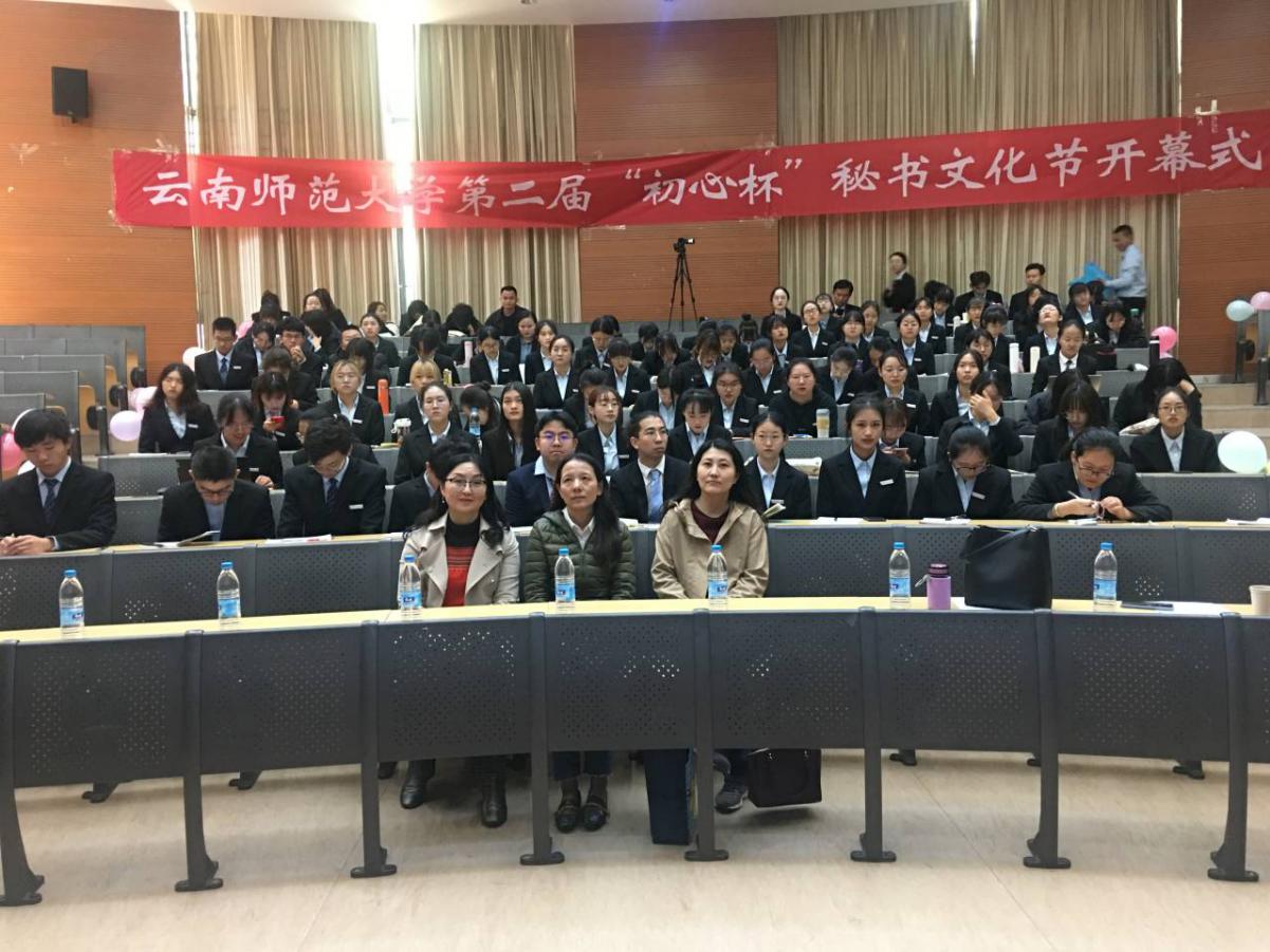 11月20日上午9:00,由文学院主办、文秘系承办的yL23411永利官网登录第二届“初心杯”秘书文化节在呈贡校区明德二号楼报告厅举行了开幕式。开幕式由文学院副院长徐俊六主持,文学院院长李立致开幕词,副院长傅宇斌、中文系系主任李瑛、文秘系系主任贾蔓先后发表讲话。