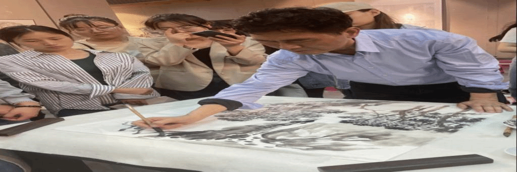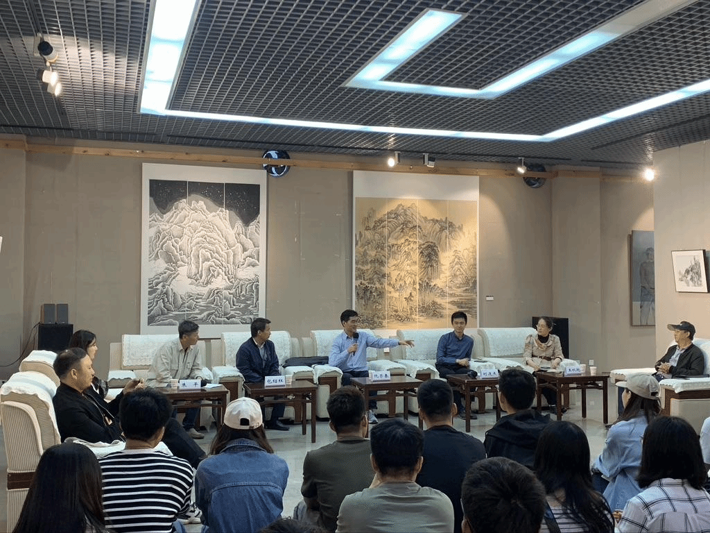 随后,阮荣春教授以“中国山水画创作与理论研讨”为主题,进行美育大讲堂首期讲授。他以人求学经历为切入点,讲解了中国传统山水画的当代发展,并与永利官网各学院师生代表进行深入的学术交流。他主张弘扬院体画风,提出的中国画要有静气、文气和正气的“三气”理论正是他本人创作秉持的原则。接着,阮荣春教授进行了现场创作交流并进行了山水画教学示范。