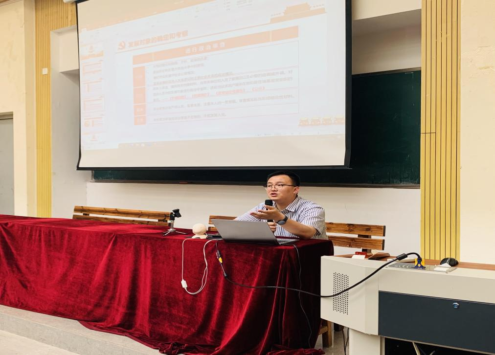 教育学部党委组织委员王友良同志以“发展党员工作相关程序要求”为主题,向党员发展对象阐述发展党员的各个步骤,让党员发展对象对入党的5个阶段25个步骤有了全面的认识。
