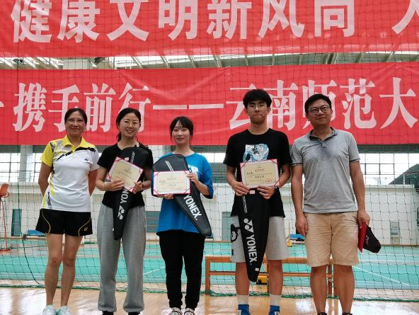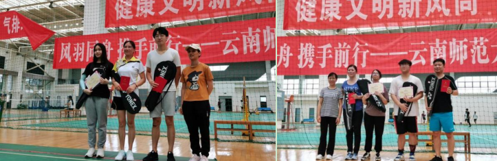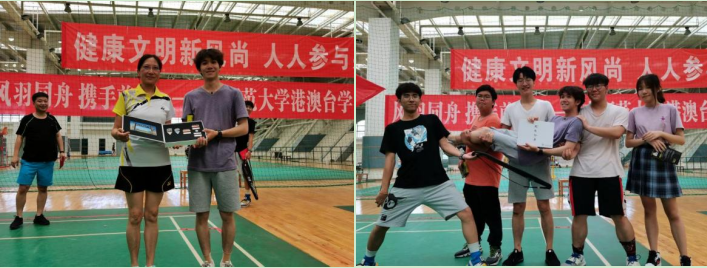 为更好地增强与港澳台学生之间的交流,男女混双项目则由对外合作交流处的教师与港澳台学生抽签组队参赛,比赛中,师生们配合娴熟,通力合作,扣杀有力,完美配合彰显了友谊赛的主题“风羽同舟,携手前行”。经过激烈的角逐,万向兴、阮光若,张辰、袁丽华,黄瑛、焦隽永分别获得男女混合双打冠亚季军。