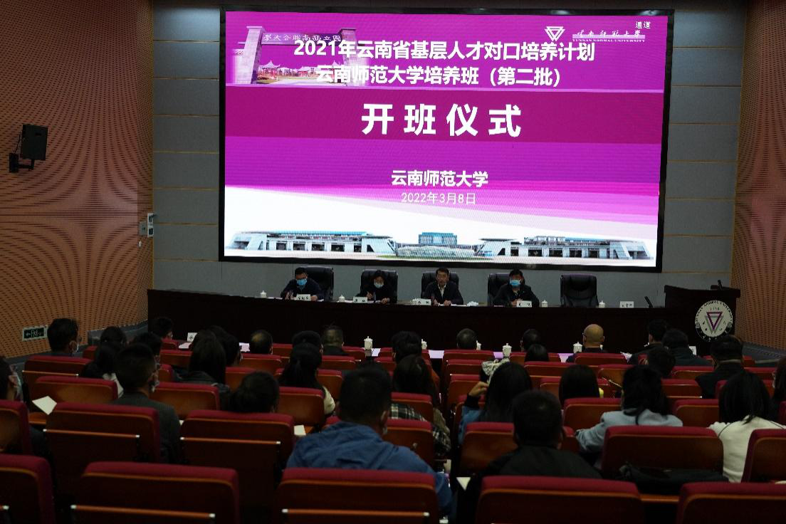 3月8日,2021年云南省基层人才对口培养计划yL23411永利官网登录培养班(第二批)开班仪式在永利官网呈贡主校区西边中心报告厅举行,校党委副书记张玮出席开班仪式并致辞。校党委组织部、继续教育学院、教育学部、文学院、历史与行政学院、外国语学院、美术学院、体育学院、马克思主义学院、数学学院、物理与电子信息学院、化学化工学院和地理学部负责人、导师,以及来自全省14个州市的46名学员参加了开班仪式。仪式由继续教育学院院长唐瑛主持。