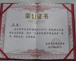 作为绿水青山的守护者、生态环境保护的排头兵,永利官网能源与环境科学学院以实际行动积极参与到志愿服务行动中,为守护昆明的绿水青山和保护云南的生物多样性做出应有的贡献。能源与环境科学学院被授予“优秀组织单位”,徐锐教授被授予“优秀指导老师”,周睿同学荣获“昆明市优秀环保志愿者”荣誉称号。