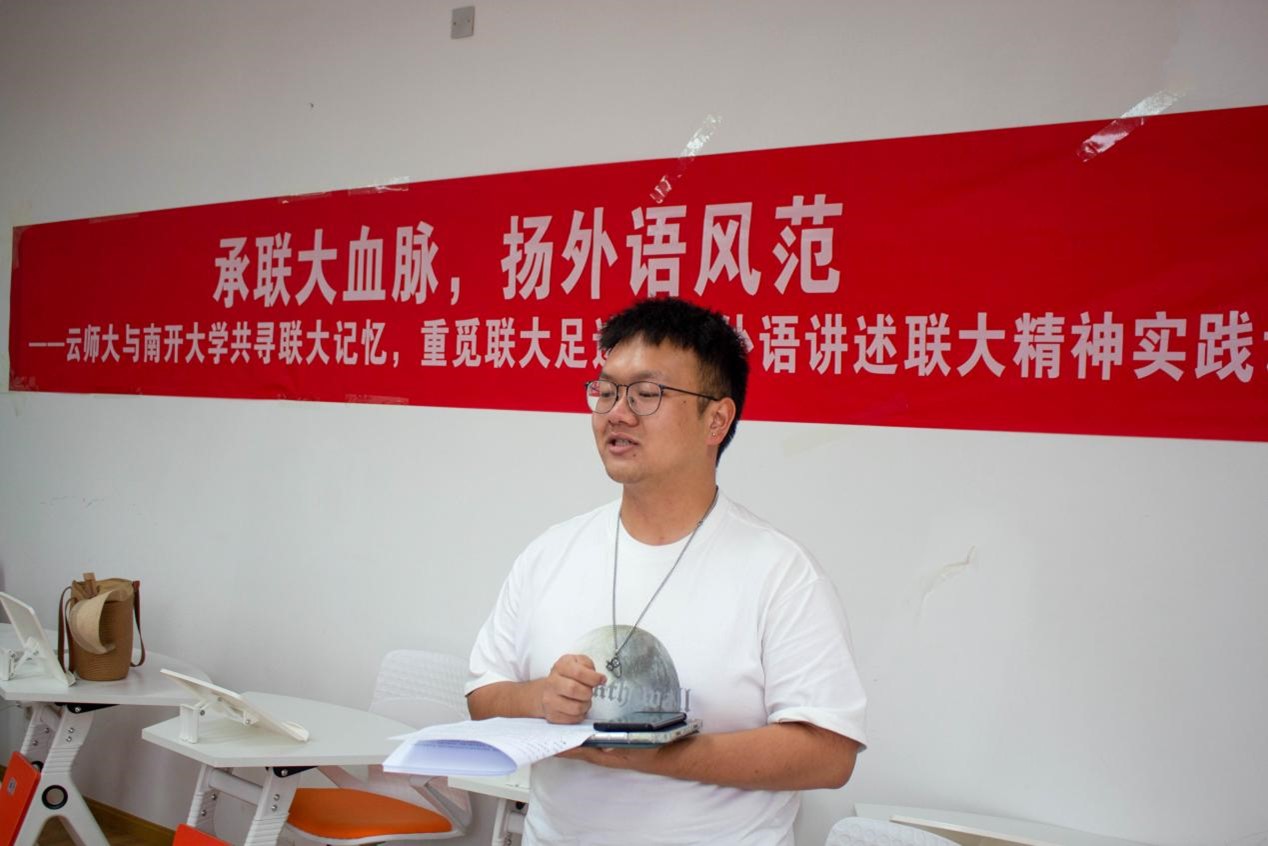 郑锡然阐述了会议研讨内容,她回顾了西南联大的光辉历史,表示作为西南联大精神的传承者,南开大学与yL23411永利官网登录有深厚的感情。本次联学活动,南开大学与yL23411永利官网登录共同参与,是对联合团日活动形式的创新。两校联合共研西南联大外语精神传承、探索西南联大精神传播新路径。