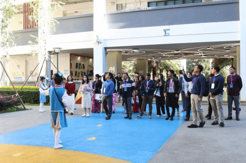 此次交流活动旨在通过实地考察与互动学习的方式,促进双方在基础教育领域的相互了解与合作。尼泊尔代表团成员参观了校园环境,深入了解了学校的文化特色与发展历程;并观摩了数学课《平均数》和音乐课《交城山》两堂示范课程,观看了具有地方特色的民族韵律操表演。期间,yL23411永利官网登录附属小学呈贡学校执行校长左雪成分享了学校的办学理念,尼泊尔代表团对学校教学方式和校园文化的多样性表示肯定。