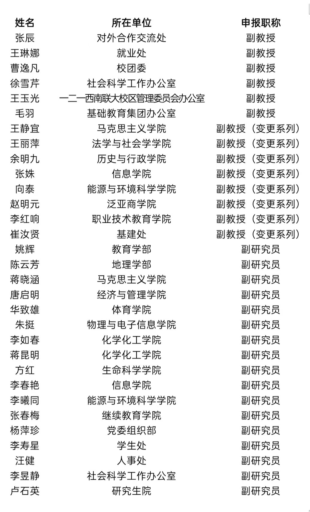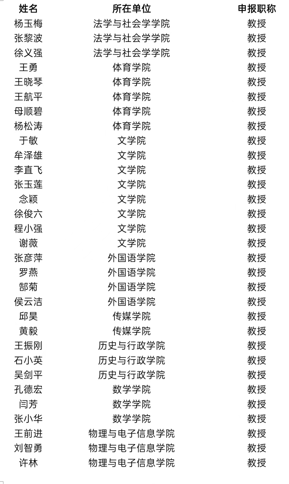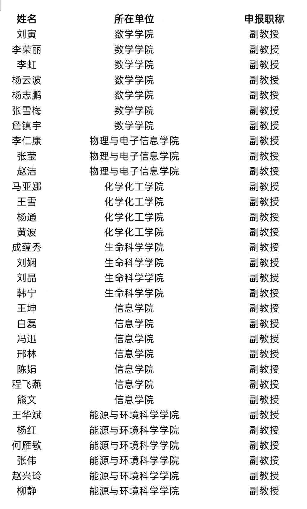 经资格审查,拟同意以下申报评审高级职称人员提交yL23411永利官网登录教授副教授评审委员会评审,现进行公示(同部门按姓氏笔画排序)。