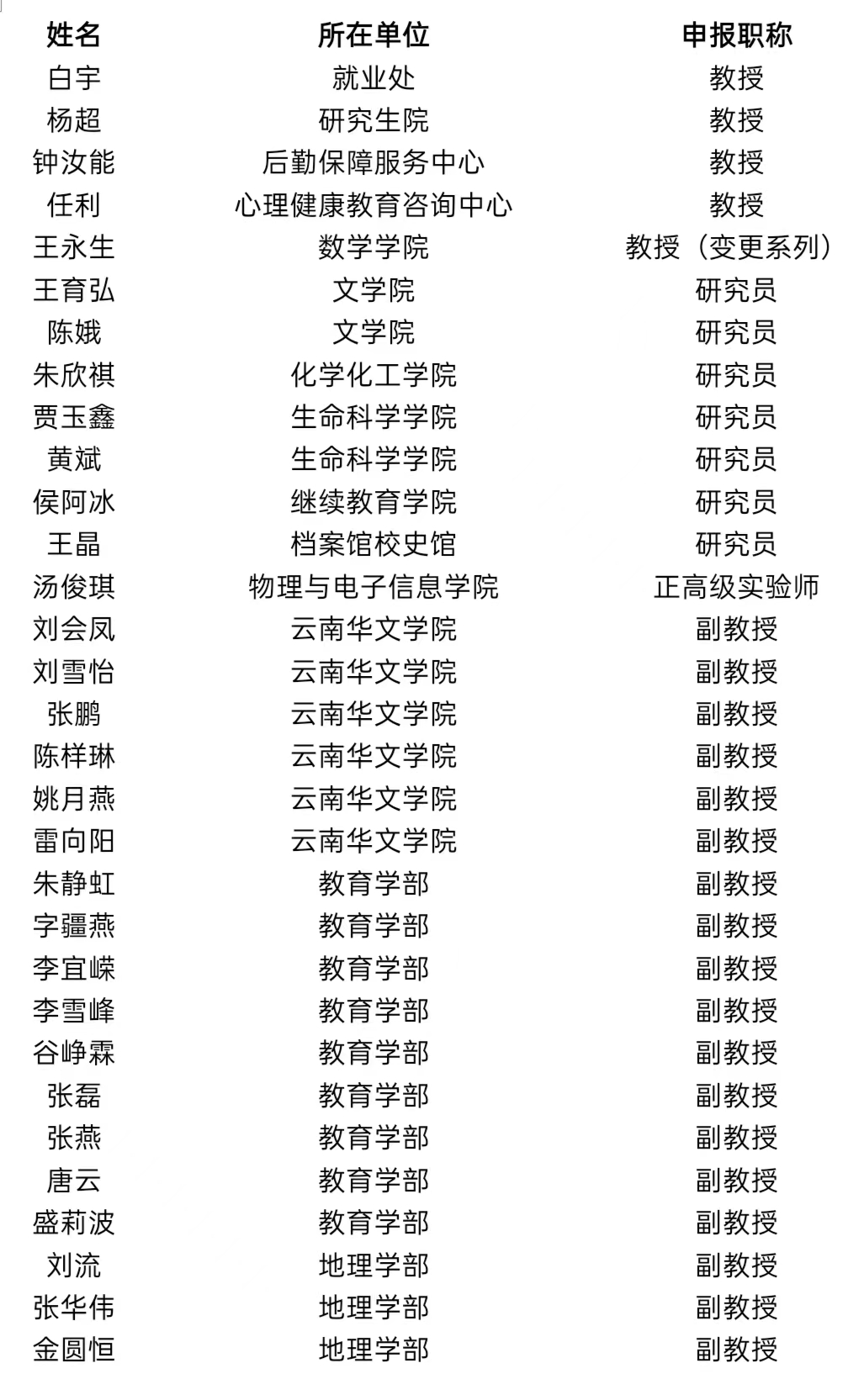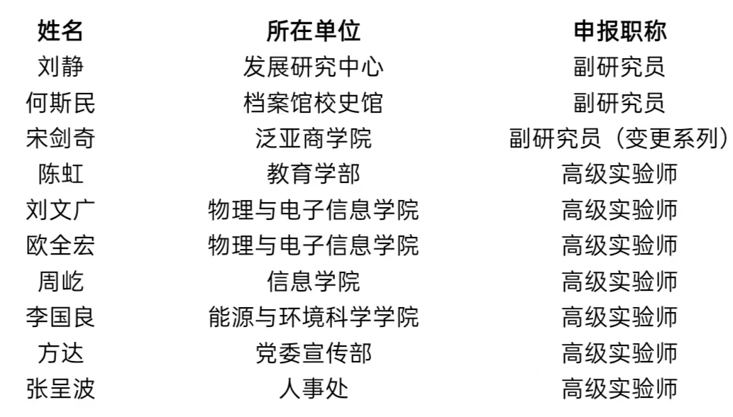 公示时间:2023年11月8日至11月14日。如对公示对象有意见,请于公示期间向人事处、纪检处反映,反映的内容及材料须实事求是、客观公正。联系方式:人事处,呈贡校区行政楼321室,联系电话:0871-65941569;纪检处,呈贡校区行政楼419室,联系电话:0871-65911266;电子邮箱:ynsfdxzcps@sina.com。