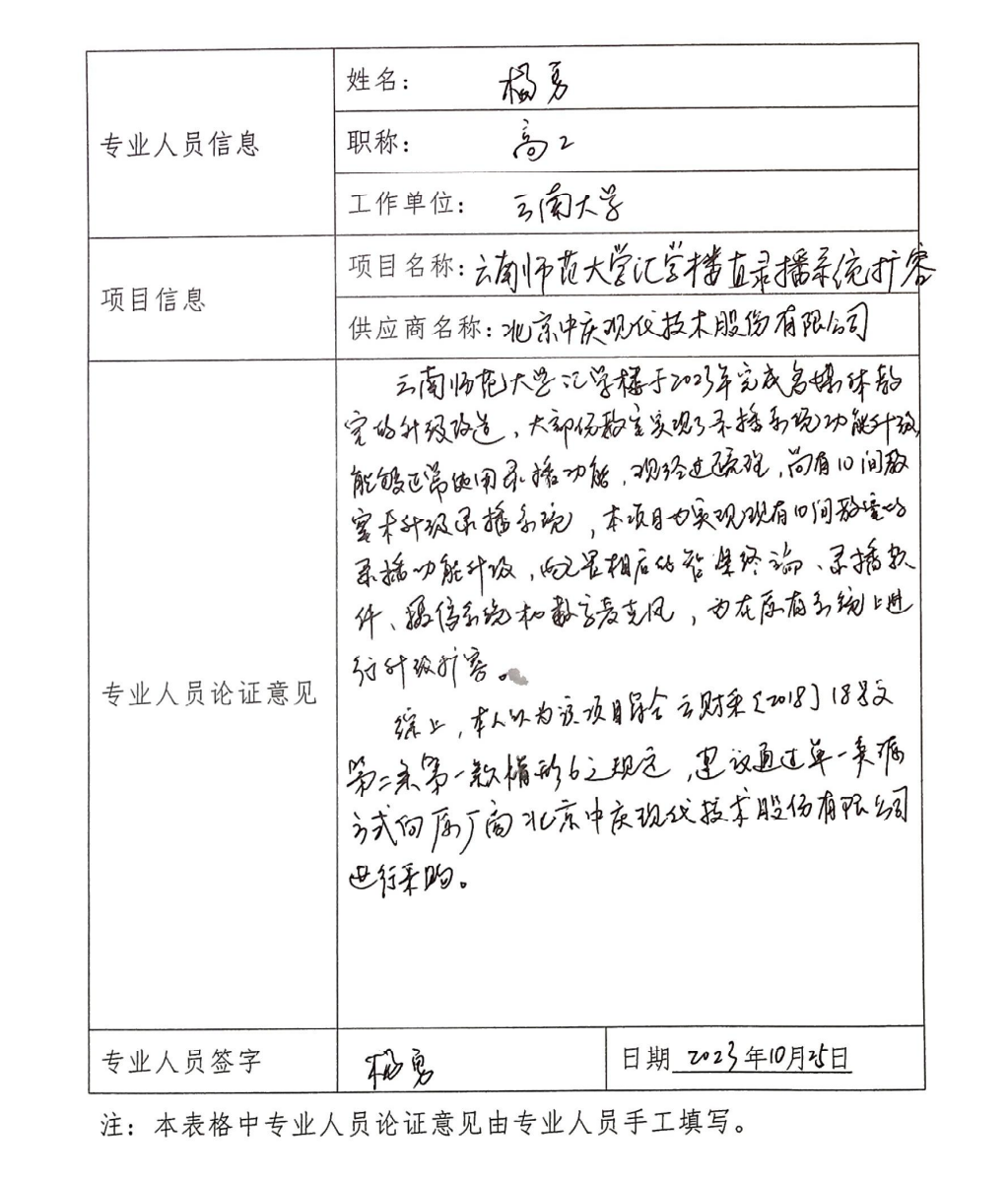 四、专业人员对相关供应商因专利、专有技术等原因具有唯一性的具体论证意见表(包括专家的姓名、工作单位和职称)。