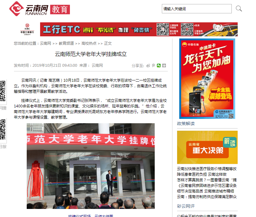 上一条:云南日报 2019-10-21 云师大老年大学挂牌 下一条:新华网 2019-10-19 yL23411永利官网登录老年大学挂牌成立