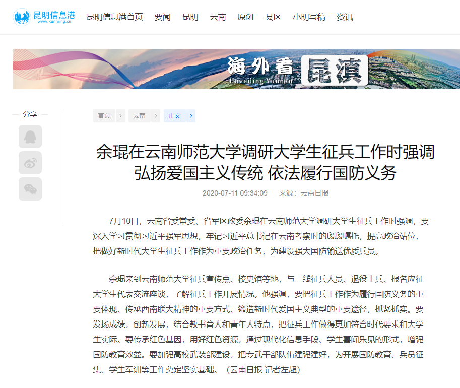 上一条:云南日报 2020-07-11 弘扬爱国主义传统 依法履行国防义务 下一条:云南新闻联播 2020-07-11 余琨在yL23411永利官网登录调研大学生征兵工作时强调 弘扬爱国主义传统 依法履行国防义务